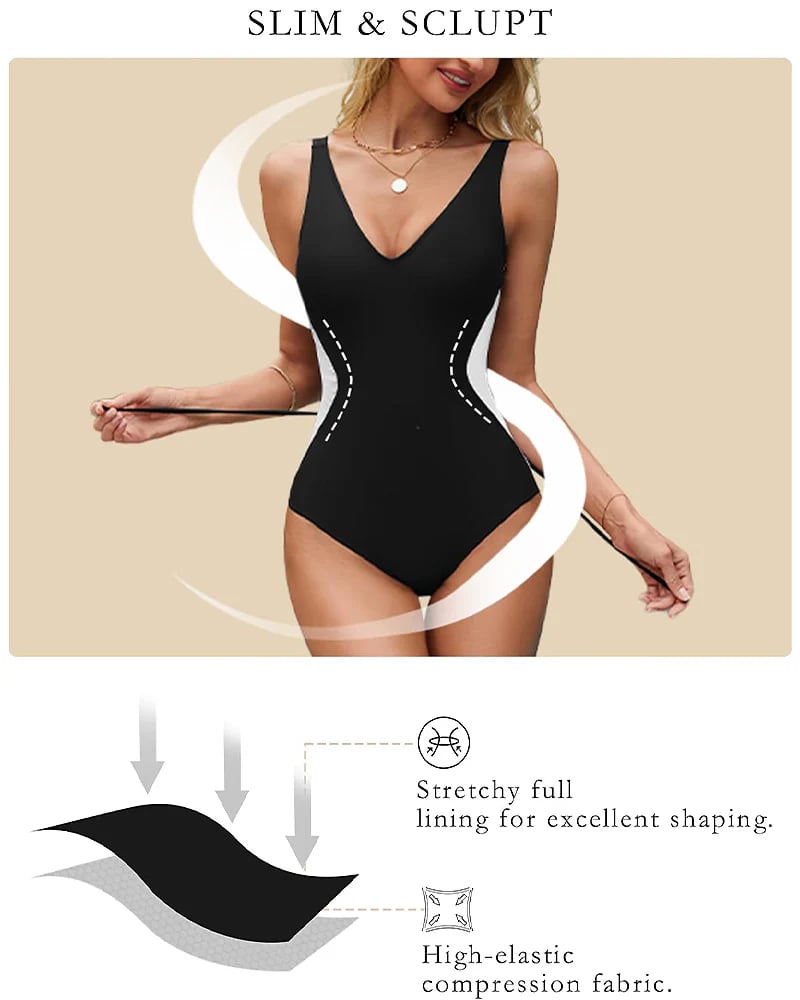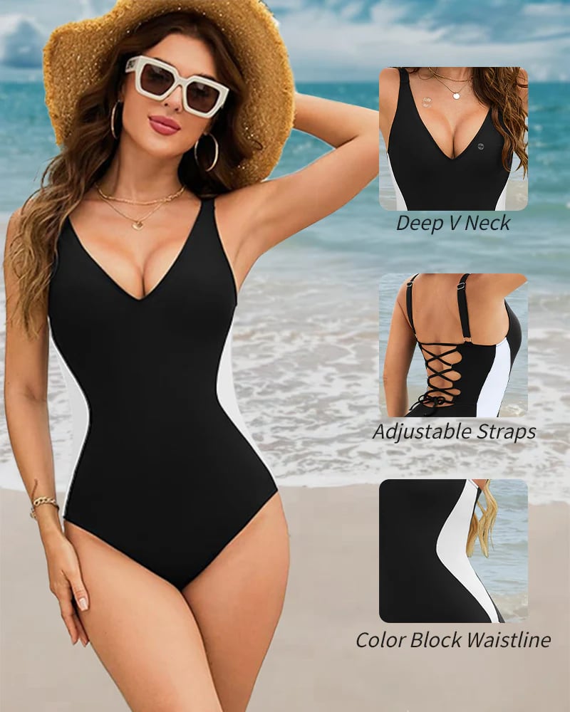 The slimming tummy control swimsuits for women features with adjustable lace up back, and contrasting side waistlines that effortlessly sculpt your body silhouette, making you charming and eye-catching on the beach.